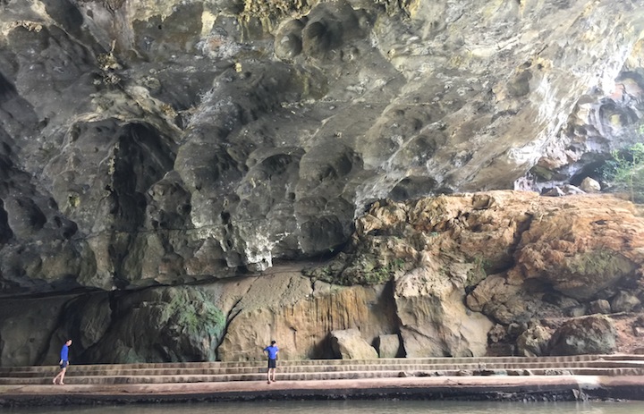 Du khách xuống thuyền máy đi theo sông Son vào động Phong Nha. Sông Son rộng chừng 35-40m, nước xanh ngắt, trong thấu đáy, nhìn rõ cả những đàn cá đang bơi và mất khoảng 30 phút thì tới động.